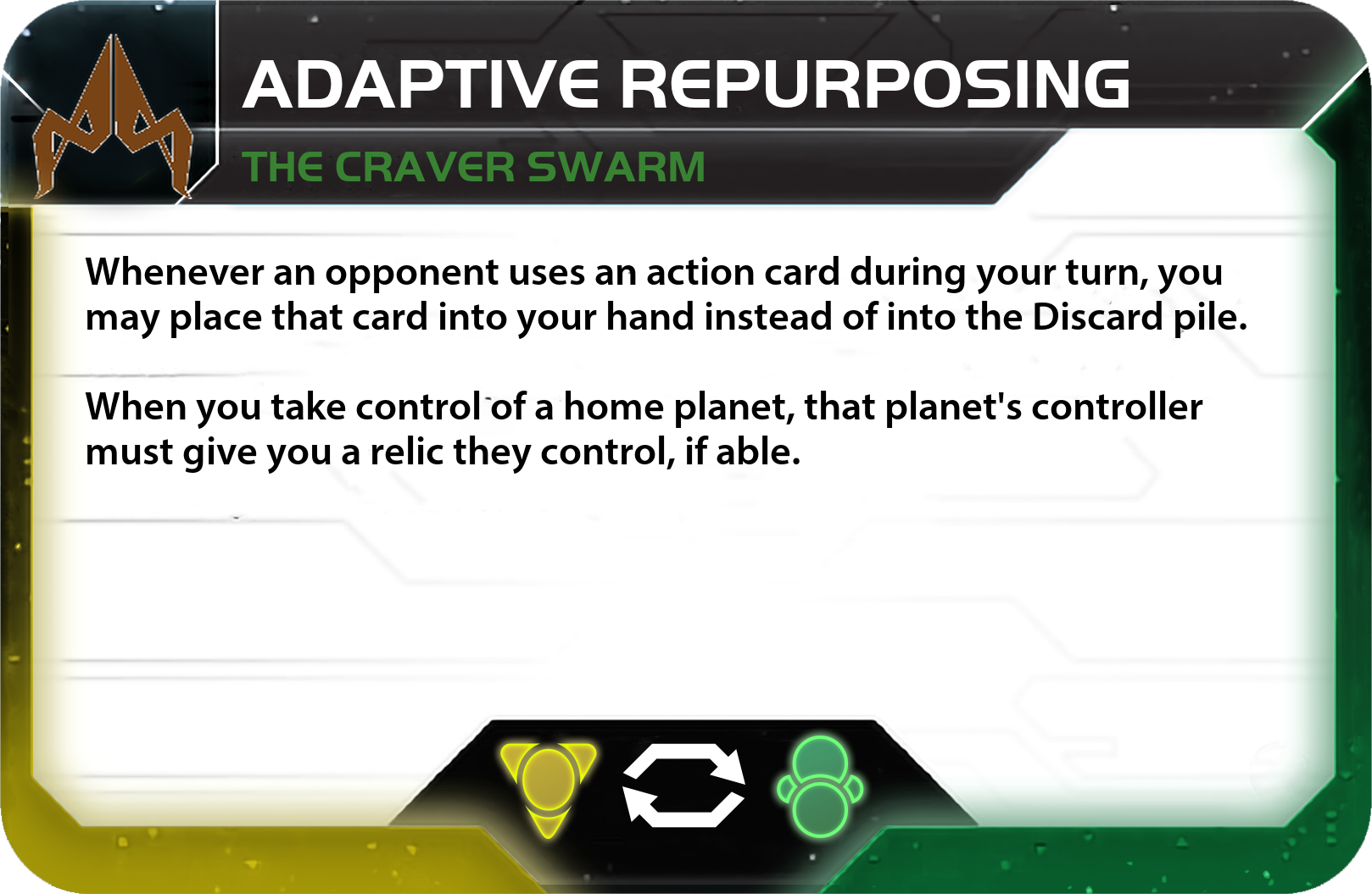 - Exploitation: When a planet gains one of your Locust tokens, exhaust it. Planets with Locust tokens on them cannot be readied. These tokens cannot be removed by any game effect or ability.