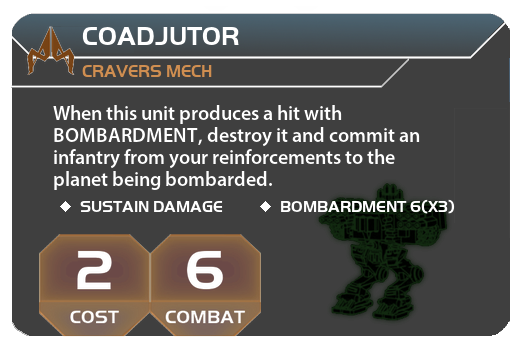 When this unit produces a hit with BOMBARDMENT, destroy it and commit an infantry from your reinforcements to the planet being bombarded.